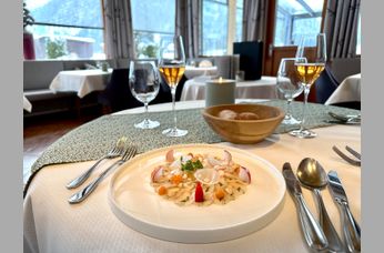 In unmittelbarer Nähe des Achensees findet sich das Alpin und verwöhnt mit haubengekrönten Spezialitäten, hübschen Komfortzimmern und feiner Wellness. Vater Armin und Sohn Alexander Gründler sorgen gemeinsam für eine edle, mit vier Hauben gekrönte „Alpin-Aromaküche“, serviert im eleganten Gourmetstüberl oder im Genießer-Wirtshaus.