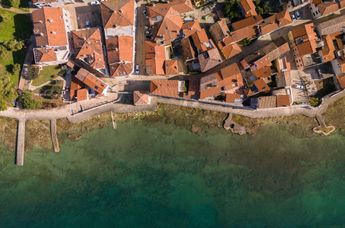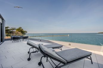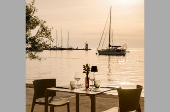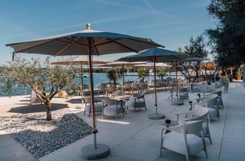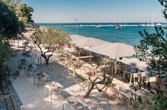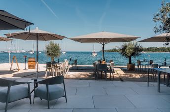 Neueröffnung im Juni 2024: Mehr Pole-Position für den Sonnenuntergang geht nicht: Und das sogar vom Bett aus. Von jedem der 27 Zimmer und Suiten des Boutiquehotels Blu Mare eröffnet sich der Blick direkt auf das nur wenige Meter entfernte Meer. Mit origineller Regionalküche weiß auch Küchenchef Stefano Cosattini im Restaurant Porporela zu überzeugen. Im Mittelpunkt steht der regionale Produktereichtum der Adria-Halbinsel, sowohl aus dem Hinterland wie auch aus dem Meer.