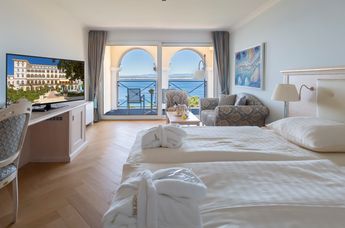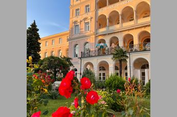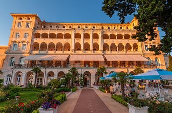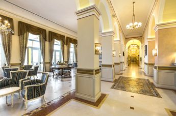 Im Stil der Belle Epoque 1895 erbaut und nach umfangreicher Renovierung 2014 in der Holleis-Hotelgruppe neu eröffnet, versetzt das Grand Hotel seine Besucher in eine andere Zeit. 114 stilvolle Zimmer und Suiten vereinen mondänen k.-u.-k.-Schick mit zeitgemäßem 4-Sterne-Komfort. Eleganter Wellnessbereich mit finnischer Sauna, Behandlungsangebot, Hallenbad und beheiztem Salzwasser-Außenpool lädt zum Entspannen ein.