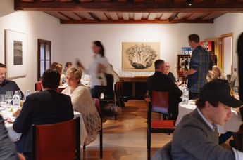 Im Mesnerhaus sorgte Lukas Nagl für Hochstimmung. Das fulminante Dinner umfasste etwa Attersee-Saibling mit Brennnesselsamen, Mondsee-Zander mit Spitzpaprika und -kraut, Rehbock aus dem Attergau mit Melanzani und Waldpilze sowie Spaghetti-Kürbis mit Physalis und Salzkaramell. Für eine perfekte Begleitung sorgten die Weine vom südsteirischen Weingut Tement sowie dem Südtiroler Weingut Lageder.