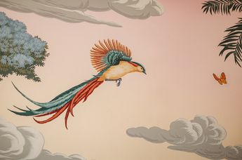 Als Vorbild diente eine von Max Reinhardts Theaterkulissen, die im Dachboden des Schlosses Leopoldskron entdeckt wurde. Fulks Team beauftragte das Londoner Unternehmen DeGournay, das für seine handgemalten Tapeten und die meisterhafte Restaurierung antiker Papiere bekannt ist, mit der Umsetzung seiner Vision auf allen vier Wänden, wobei Motive von Reinhardts historischer Leinwand verwendet wurden.