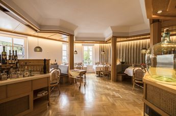 Finnische Sauna und Ruheraum wurden adaptiert, dazu gesellt sich nunmehr eine Biosana mit Aromatherapie. Lehmputz an den Wänden, Holzmöbel, Wandelemente aus steirischer Esche, duftende (!) Heublumentapeten sowie stylisher, multifunktionaler Trinkbrunnen mit Teeküche sorgen für angenehmes Wohlbefinden. Auch der Weinkeller bekam einen neuen Lehmputz-Anstrich und wurde zudem um ein Großflaschenregal erweitert. Als zweiter Schritt erfolgt die Rundum-Sanierung der Sanitäranlagen im Untergeschoß (bis ca. Mitte April). Es entstehen ausschließlich Unisex-Toiletten – exklusive Toiletten-Suiten mit privater Atmosphäre, alles barrierefrei sowie mit neuem Lift erreichbar.
