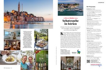 Dafür stehen großartige Erlebnisse auf dem Programm, von der Olivenöl-Verkostung bei den schon legendären Brüdern Chiavalon über eine geführte Trüffelsuche im Mirnatal und eine Stadtführung durchs Weltkulturerbe von Poreč bis zur Weindegustation im kultigen Design-Weingut Kozlović.