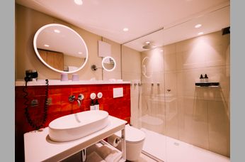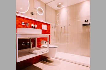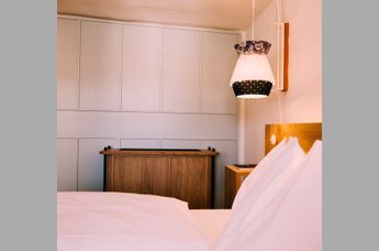 Wer vom Bett aus den Himmel betrachten möchte, bezieht die großzügige Two-Bedroom-Suite im obersten Stockwerk, die durch die Verschmelzung zweier Einzelzimmer entstanden ist. Eichenböden wurden abgeschliffen und die massiven, für die Gans entworfenen Eichenholzbetten aufpoliert, statt neue angeschafft. Die Badezimmer präsentieren sich mit neuen Waschtischen, Armaturen, Beleuchtung und rostroten Mosaikfliesen als moderne Eyecatcher.