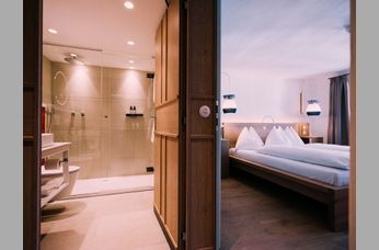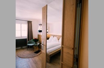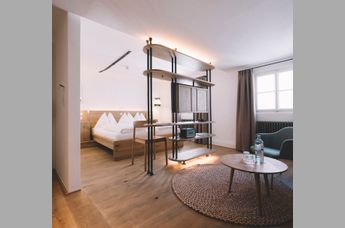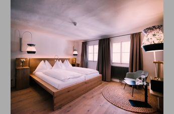 „In den neuen Zimmern haben wir Gestaltungselemente, Formen und Farben, die im Hotel an vielen Orten bereits vorhanden sind, fortgesetzt“, erzählt Andreas Gfrerer, der durch die beiden Umbauten des letzten Jahres seine Blaue Gans nun als stimmiges Gesamtkunstwerk sieht.