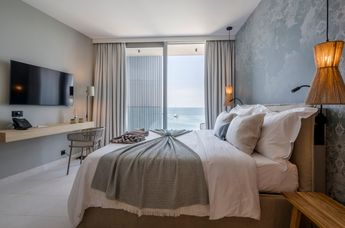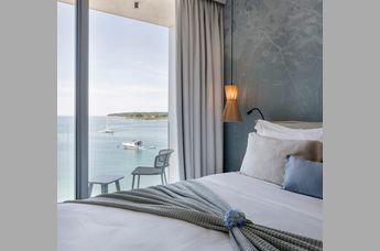Mediterrane Pastellfarben, feinste Stoffe und behaglicher Luxus im Detail prägen das von der schweizer Hotel Gruppe „Cachet Hotel Collection“ (vier Hotels in der Schweiz und das erste in Kroatien) konzipierte Interieur. Ultimatives Wohn-Highlight ist die auch für Gäste buchbare Owner-Suite mit Fahrstuhl bis ins Penthouse, das zudem eine weitläufige Terrasse birgt. Sie dient an stimmungsvollen Abenden fallweise als Champagner-Sunset-Pop-Up-Bar.