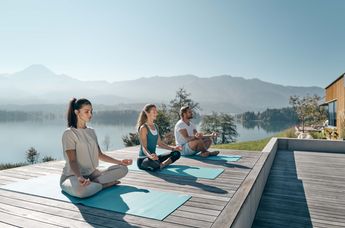 Alleine die idyllische Lage mit dem 100.000 m² großen Seepark entspricht schon dem immer stärkeren werdenden Reisewunsch nach Ruhe in einer erholsamen Landschaft. Kein Wunder, dass bei der umfangreichen Umgestaltung des Wellnessbereiches das Thema „Aussicht“ immer im Mittelpunkt aller Überlegungen stand. Und diese Aussicht ist einfach ganz großes Kino: Sei es aus dem schon genannten, ganzjährig beheizten Pool mit seinen 20 Metern Schwimmlänge, dem Sprudelbecken, dem großzügigen Ruhebereich mit Infrarotliegen, der Saunalandschaft mit Panoramasauna, Biosauna und Dampfbad oder aus dem Bewegungsraum Seefit mit Terrasse. Der Faaker See und die kärntnerisch-slowenische Bergwelt mit dem eindrucksvollen Mittagskogel sind immer gegenwärtig. Durch große Panoramafenster verschmelzen Innen- und Außenbereich und lassen Umgebung und Sonne herein. Der Seemotionen SPA präsentiert sich als elegante Welt in zurückhaltenden, sanften Farbtönen, naturnahe in Beige und Creme, dazu Akzente in dunklem Holz und in unterschiedlichen Blau-Nuancen.