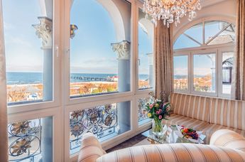 Der Ahlbecker Hof erwartet Gäste mit viel Tradition und zurückhaltendem Luxus. Die 90 stilvollen Zimmer und Suiten bieten Gästen ein kaiserliches Erlebnis. 1890 eröffnet, glänzt der Ahlbecker Hof noch heute im Stil der klassischen Kaiserbäderarchitektur. Heute sorgfältig restauriert und mit viel Liebe zum Detail von Hoteldirektor Marco Fien geführt, ist der Ahlbecker Hof ein beeindruckendes Ensemble, das aus dem beliebten Haupthaus, zwei großzügigen Villen und einer Suiten-Residenz besteht, die sich dank ihrer Größe ideal für Familien eignen. Als eines der drei Seeheilbäder auf Usedom ist Ahlbeck gemeinsam mit Heringsdorf und Basin auch als die Kaiserbäder bekannt und gilt als längste Promenade Europas.