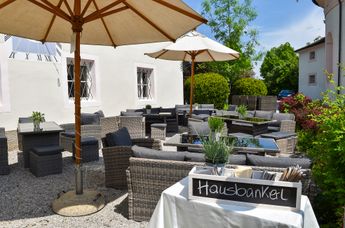 Das barocke Restaurantjuwel mit seinem Gastgarten unter der prächtigen Nussbaum ist schon lange ein Aushängeschild der Salzburger Kulinarikszene. Ergänzend zum Fine-Dining laden Iris und Jürgen Vigne auch heuer wieder aufs „Hausbankerl“. Eigentlich eine kleine Vorterrasse des historischen Gebäudeensembles mit gemütlichen Rattan-Couches.